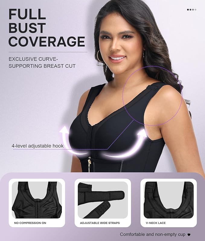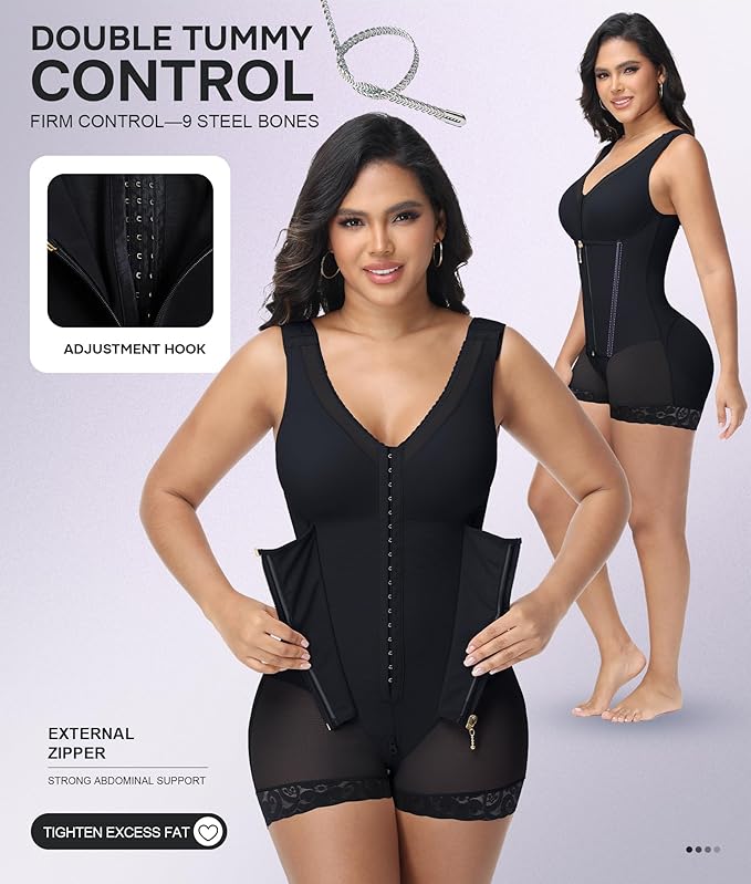• DOUBLE-LAYER TUMMY COMPRESSION Our tummy control shapewear for women features triple-row hook-and-eye closures for flexible adjustment and a smooth zipper for extra compression. Combined with nine steel bones, it effectively flattens the abdomen, sculpts the waist, and creates a sleek S-curve.